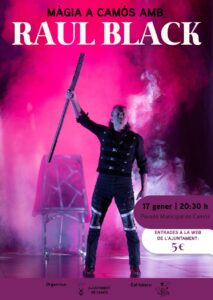 El proper dissabte 17 de gener a dos quarts de 9 del vespre  viu en directe la màgia de Raul Black a Camós.